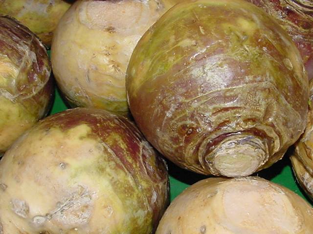 When a rutabaga is lifted from the ground, the top foliage and the roots can be cut away with a knife.
